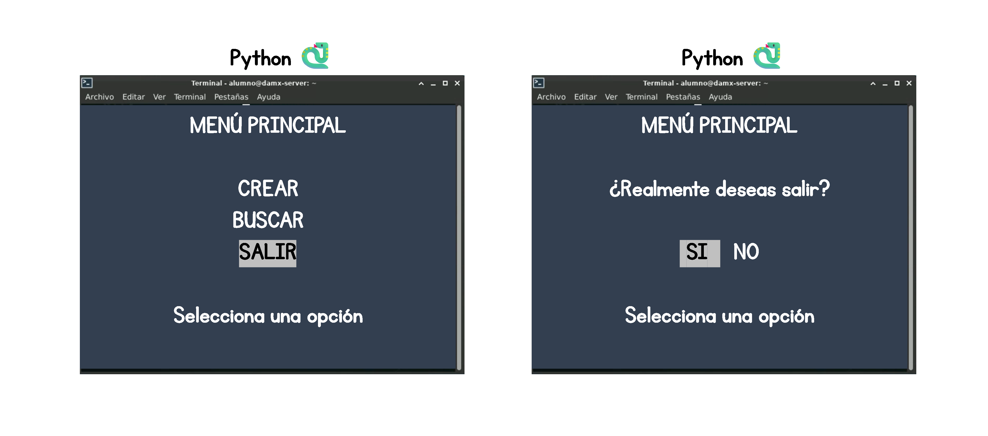 - La lógica del menú y la interacción con el usuario se implementará en Python.