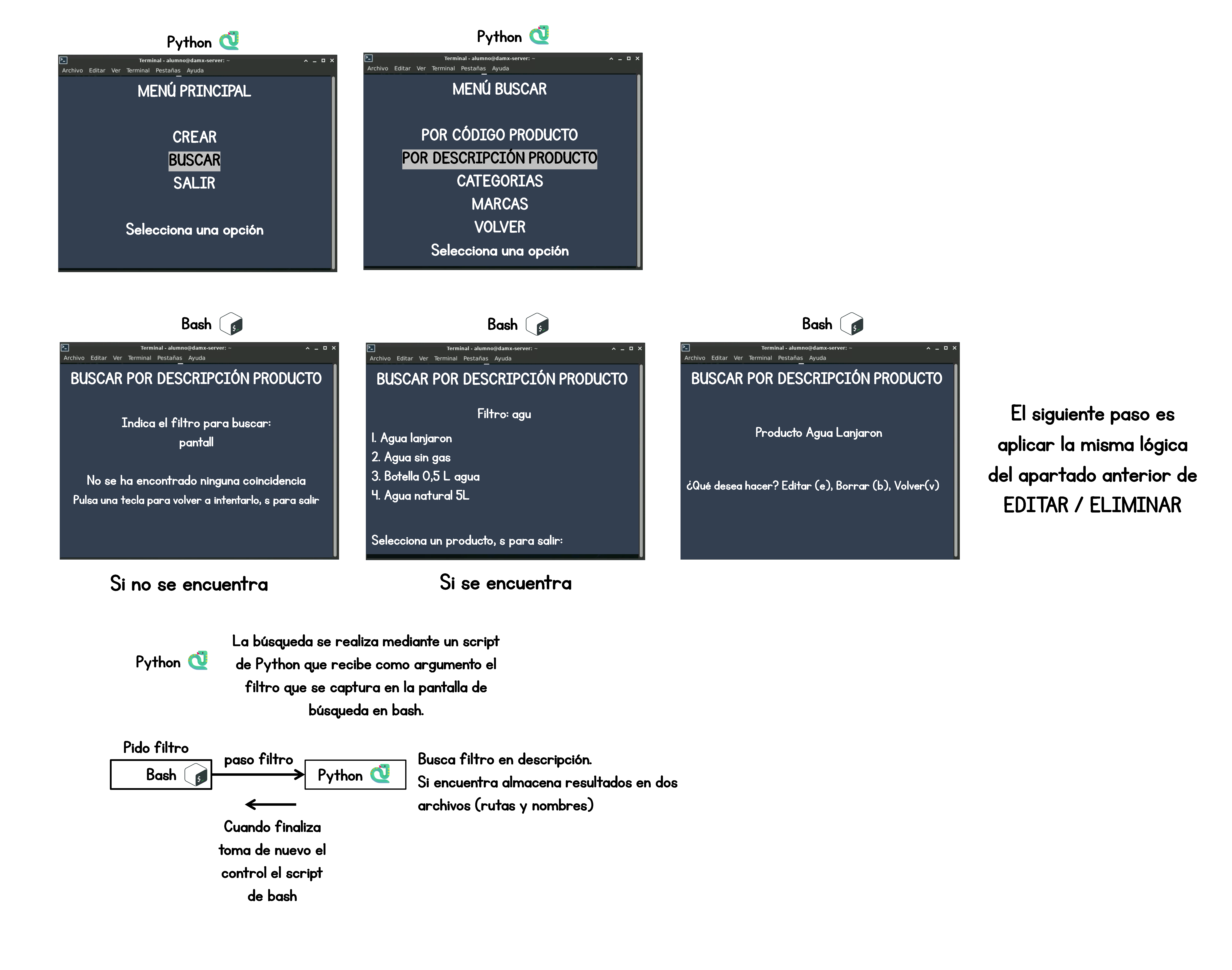 El proceso combina Bash y Python: